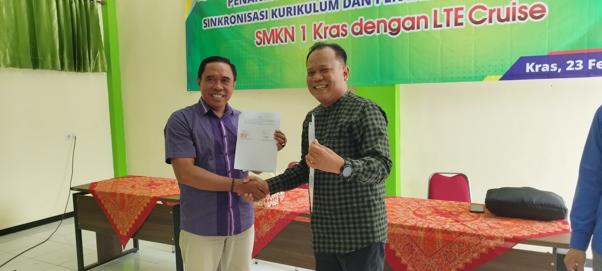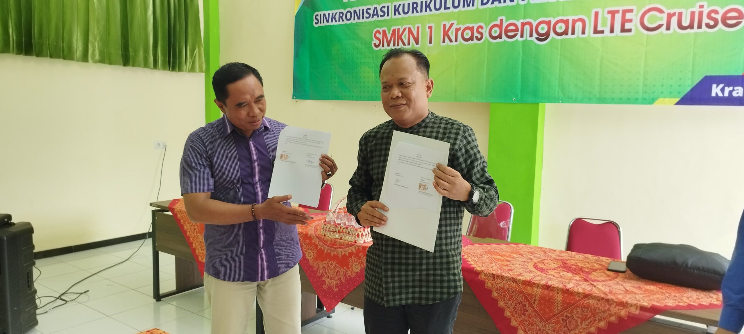 Penandatangan Kerjasama ini dilakukan oleh General Manager LTE Cruise, Kepala Sekolah SMKN 1 Kras, Kelompok Penyalur Kerja Sekolah atau disebut dengan BKK SMKN 1 Kras dan Komite terkait. Semoga kerjasama ini dapat berlangsung lama dan banyak lulusan dan alumni dari SMKN 1 Kras Kabupaten Kediri yang berkarir ke Perhotelan maupun Kapal Pesiar.