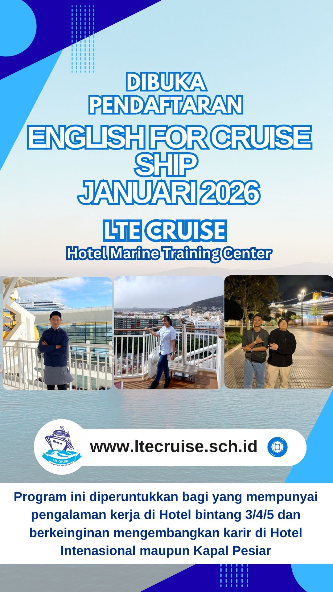 LTE (Leading Tourism Education) CRUISE merupakan Sekolah Perhotelan dan Kapal Pesiar yang dirintis sejak 1 Desember 2013 di Kampung Inggris Pare Kediri.