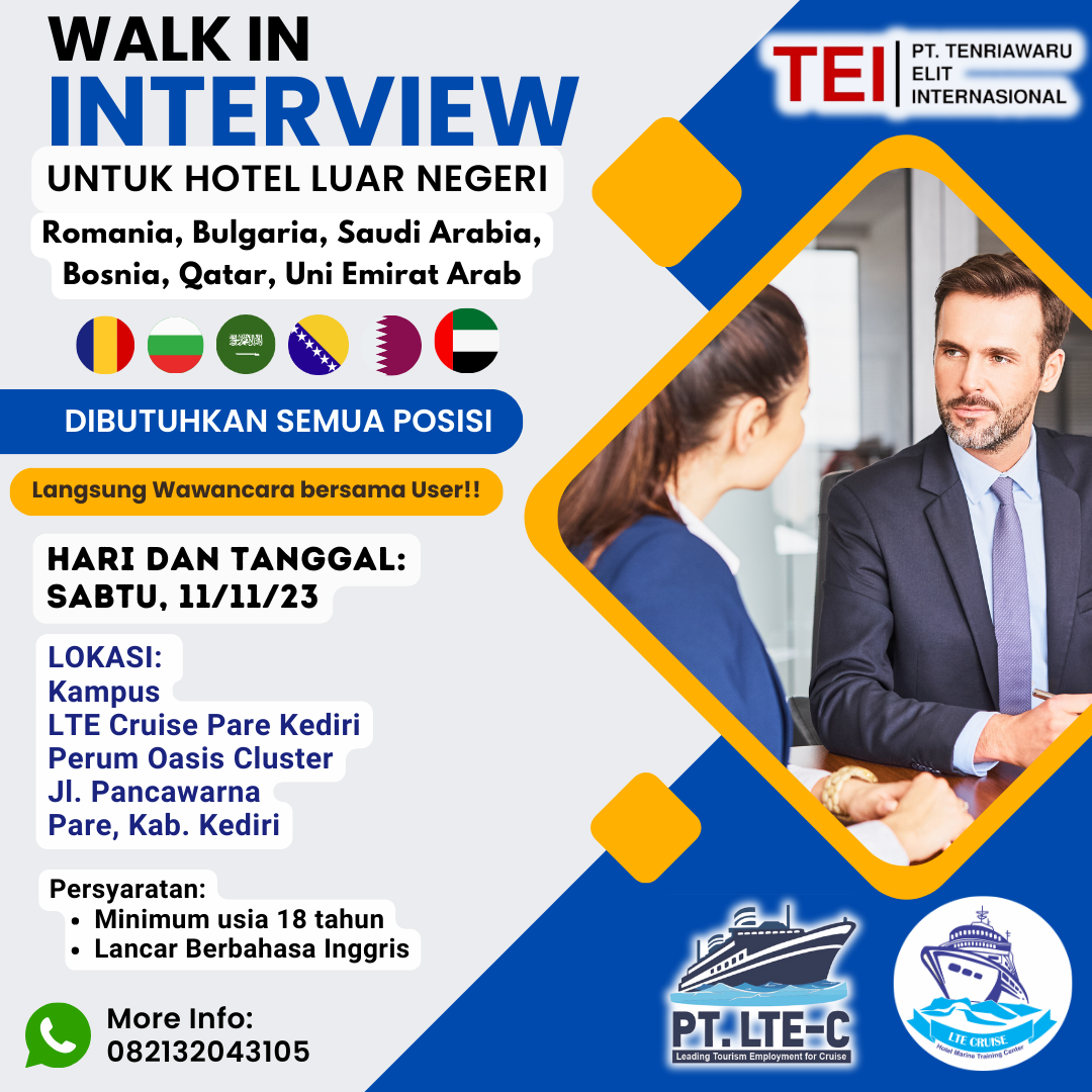Beliau sudah melakukan Walk In Interview untuk perekrutan di Hotel Eropa dan Arabian, beberapa siswa sudah dinyatakan lolos dan akan melakukan proses selanjutnya.